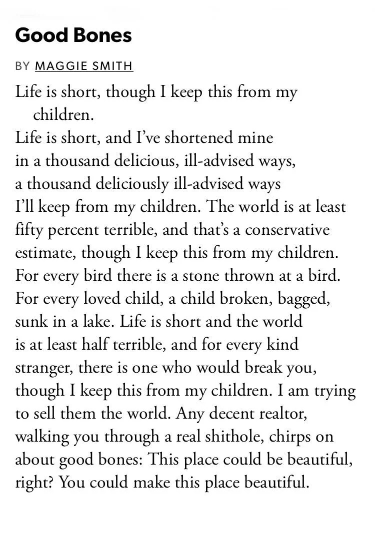 Good bones ohhh you get it, also this filled me with love and light I love you